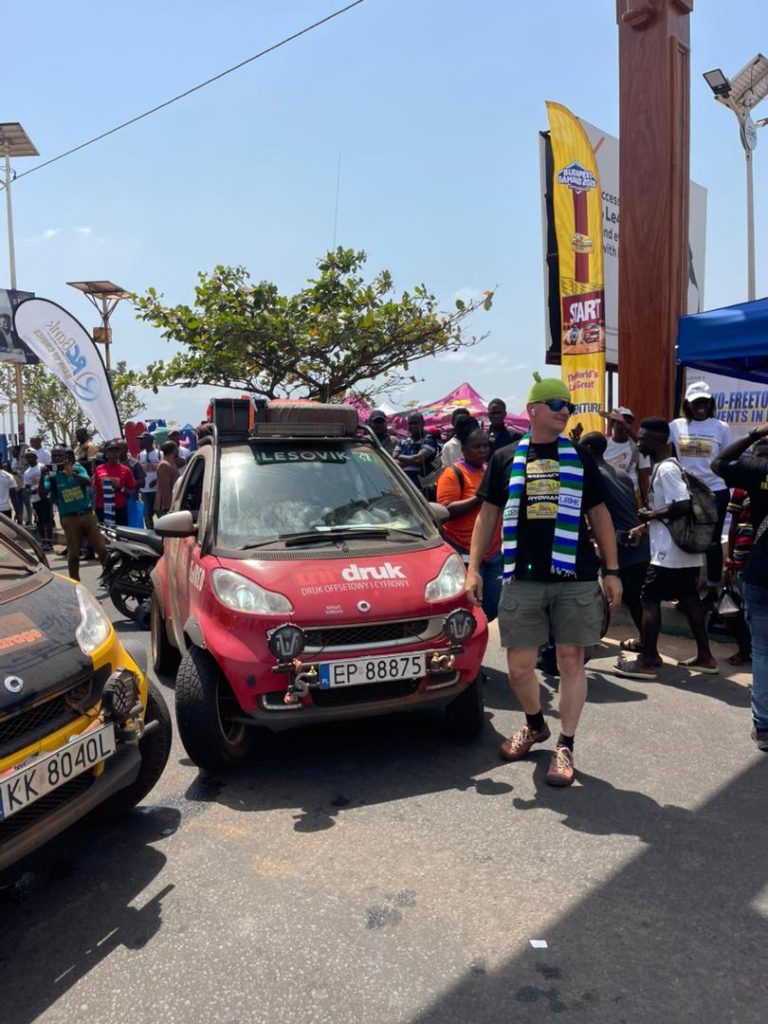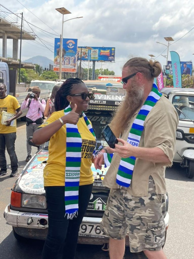 The Minister of Tourism and Cultural Affairs, Nabeela Farida Tunis, personally welcomed the rally teams, presenting them with Sierra Leonean scarves as a symbol of hospitality, cultural pride, and friendship. Rally Coordinator, Andrew Szabo, was present at the finish line, overseeing proceedings as certificates of participation were issued to drivers and crew members in recognition of their resilience, teamwork, and endurance throughout the transcontinental journey.