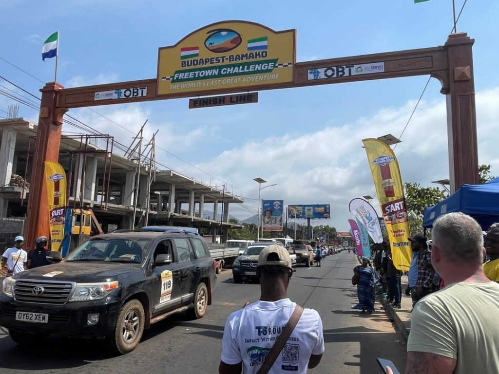 Participants of the iconic Budapest–Bamako–Freetown Rally triumphantly reached the finish line at Gigibonta Car Park, Lumley, to a jubilant welcome from an excited crowd of residents, officials, and tourism stakeholders. As each vehicle crossed the newly unveiled finish line, the atmosphere erupted in cheers, music, and celebration, marking the successful completion of one of the world’s most demanding adventure rallies on Sierra Leonean soil.